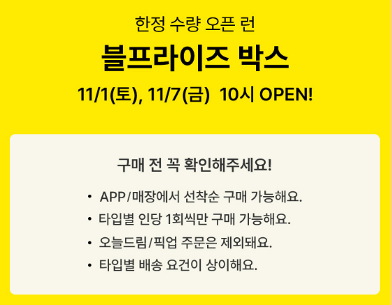 | 한정 구성 | 블프 라이즈 박스 | 랜덤박스 형태, 수량 한정 |