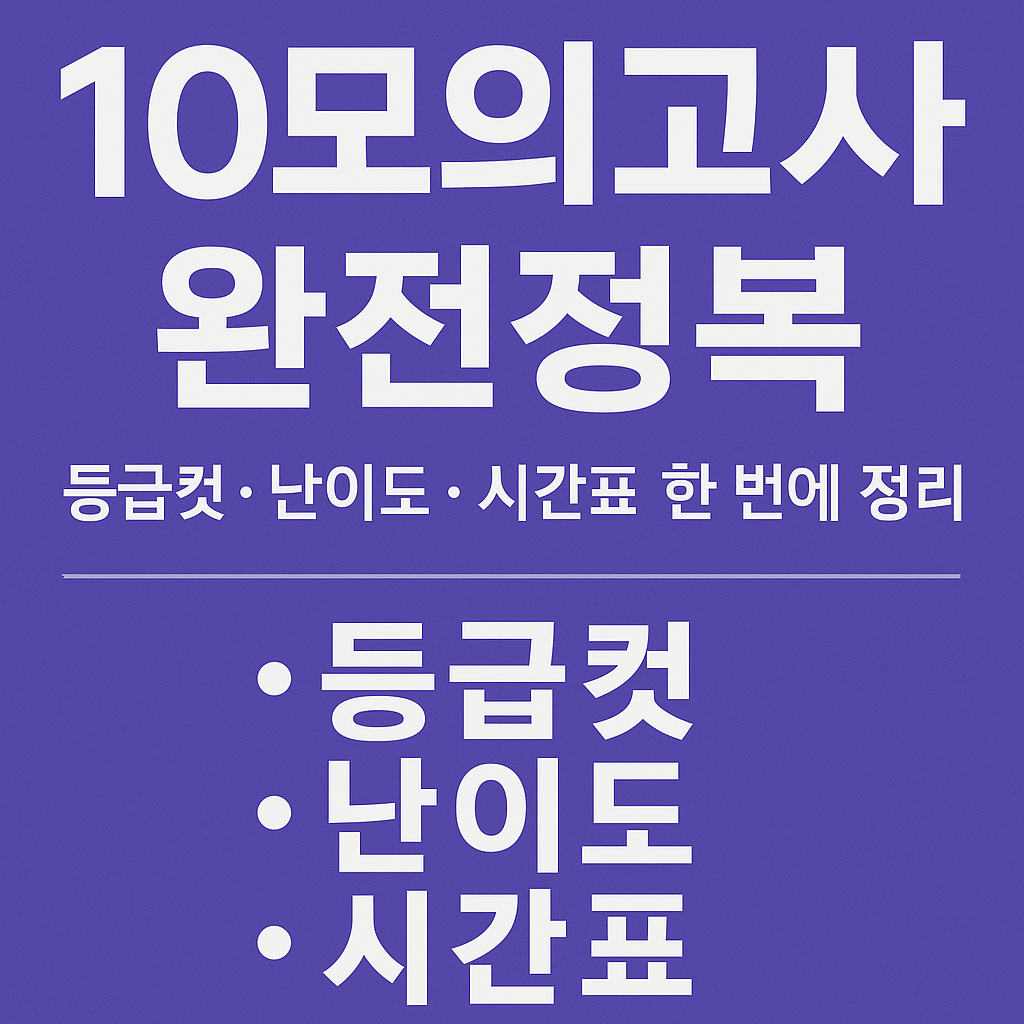 “10모의고사(10월 모의고사)”는 수능 직전 실전 점검 성격의 전국 단위 시험입니다. 결과는 등급컷(원점수 기준), 표준점수, 백분위 등 다양한 지표로 확인하며, 가채점 결과를 기반으로 취약 파트를 빠르게 보완하는 것이 핵심입니다.