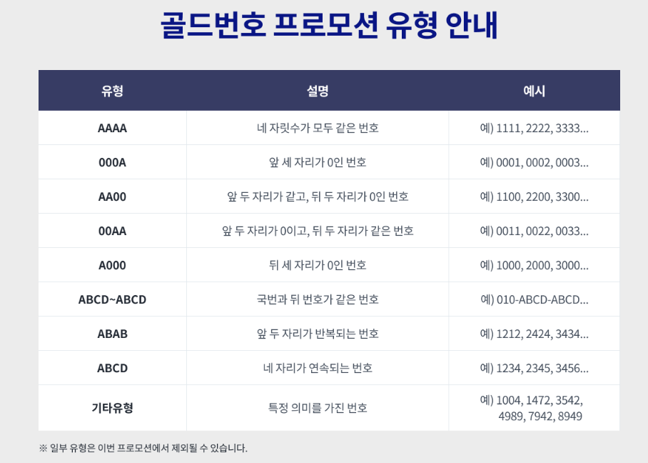 ‘골드번호’는 반복되는 숫자(예: 1111), 특이한 의미가 담긴 숫자(예: 1004), 혹은 국번과 뒷자리 패턴이 일치하는 형태(예: ABCD-ABCD) 등을 지칭해요. 이런 번호들은 기억하기 쉽고, 나만의 특징으로 남기도 하죠. SKTsms 이 번호들을 ‘골드번호 프로모션’이라는 형태로 추첨 제공하고 있어요.